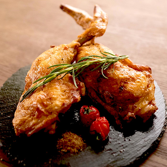 ガブリと豪快に!骨付きもも肉ならではのジューシーな肉質をご堪能下さい。