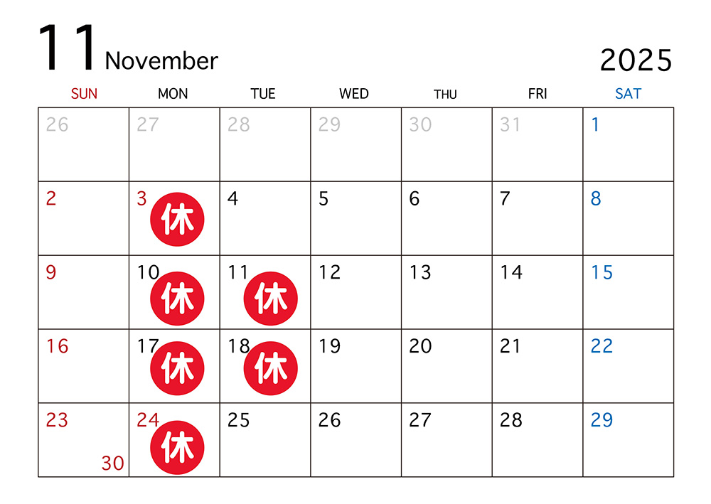 Hair Studio PEAR / 11月店休日のお知らせ(2025)