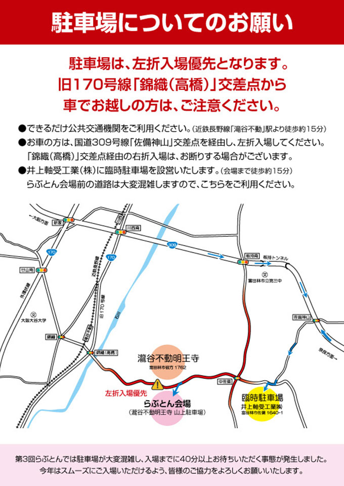 ※井上軸受工業(株)に臨時駐車場もありますのでこちらもご利用ください。(会場まで徒歩約15分)