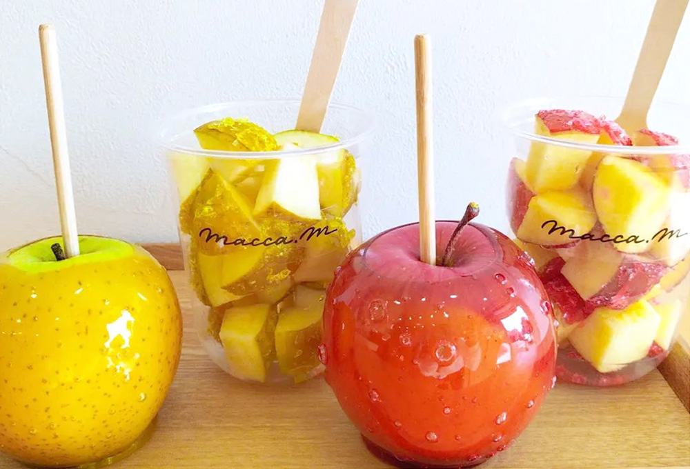 macca.mは、りんごが美味しいりんご飴として、季節毎に甘み・酸味・果汁・香りのバランスのとれた1番美味しいりんごを選りすぐり、提供しています。