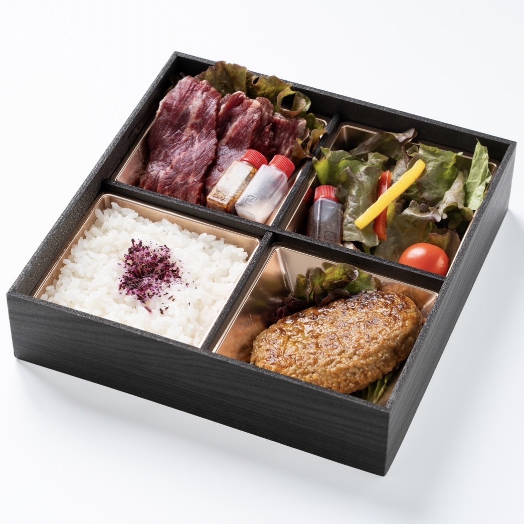 特選されたハラミを岩塩・自家製タレの2種類のお召し上がりいただけます。当店 No.1のお弁当!