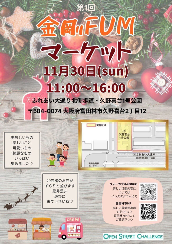 場所:ふれあい大通り北側歩道・久野喜台1号公園(〒584-0074 大阪府富田林市久野喜台2丁目12)