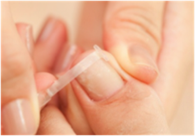 特許を取得している巻き爪ケア具で、痛みを与えず巻き爪の形を根元から作り変えます。