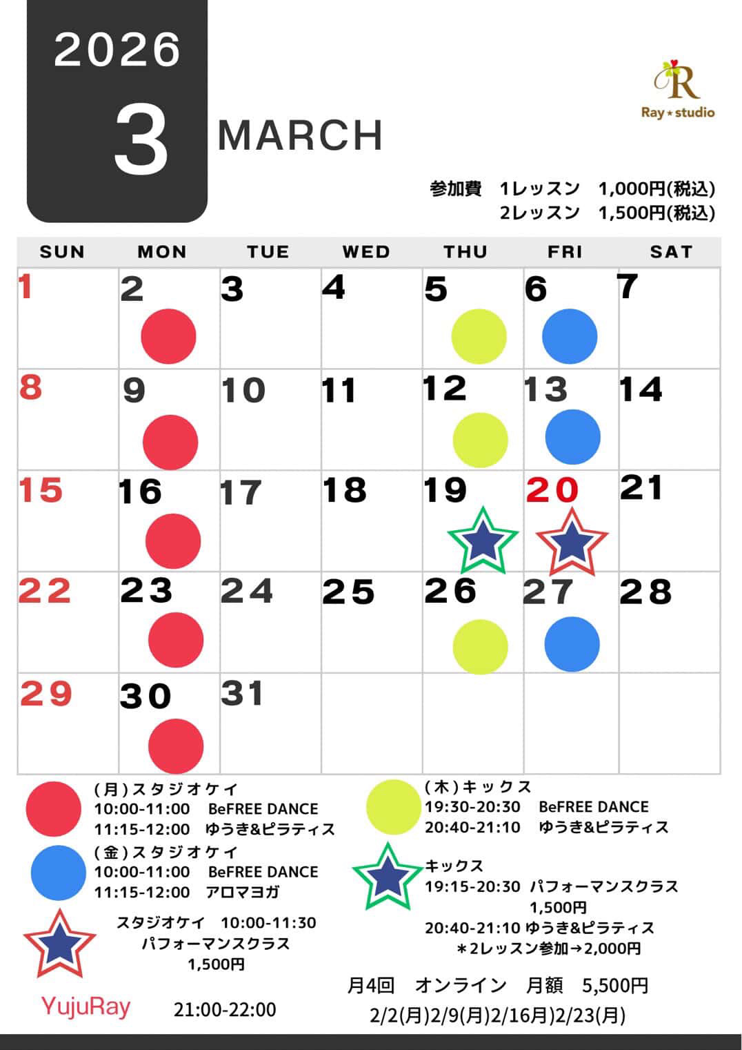 ダンスフィットネス、ヨガ、ピラティスなど、気軽に1回から参加OKです。